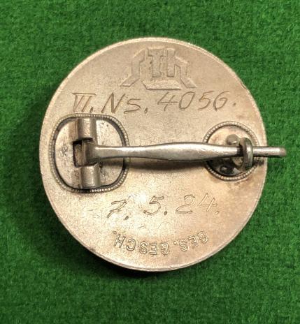 Silver gilt and enamel 1924 Stahlhelm Membership badge. Numbered VI.No.4056 with the date 7.5.24 engraved to the reverse.Manufacturer marked in relief to the reverse. Excellent clean condition with light patination.