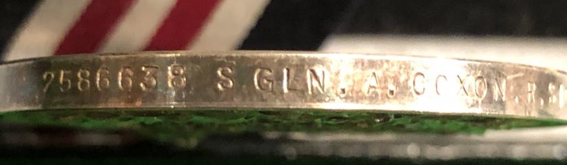 Comes with copy photo of Coxon, copy of citation, and his R.Signals cap badge and tie pin.