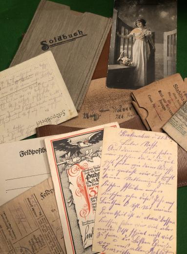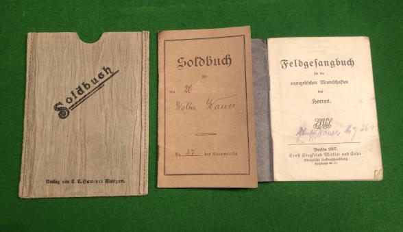 A good grouping of a Soldbuch, photographs, Feldpost, diaries and notebooks contained in a leather wallet named to an Unteroffizer Walter Water of the machine gun section of the 4th Uhlan Regiment. The ephemera all appears to be from the 1917/18 period and there are some fine views of the fully equipped machine gun section. All items in good, used condition and would reward further research.