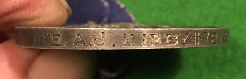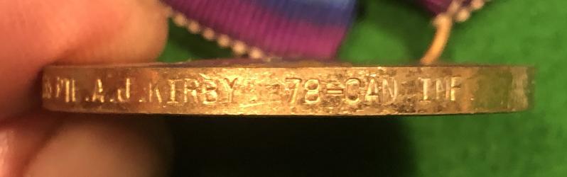 BWM and Victory pair with a silver Rockwood, Manitoba tribute medal to 721235 Pte.A.J.Kirby 78th Battalion Canadian Infantry KIA 30/10/1917. Pte Aubrey John Kirby, originally from Meriden in Warks enlisted in the Canadian Infantry in 1915 and was wounded and declared missing on 30/10/17, his death was assumed on the same date, he is commemorated on the Menin Gate. Medals were forwarded to his mother, still resident near Coventry, alongside a silver tribute medal presented by the Municipality of Rockwood, Manitoba which is inscribed to Kirby. Some research included but there are some 50 pieces available in the Canadian archives to be down loaded. Good overall condition with some rubbing and edge knock to BWM.