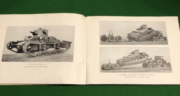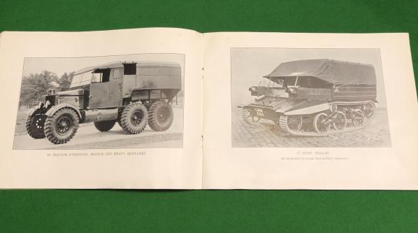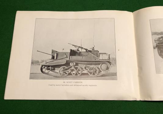 Published by the War Office, this landscape format manual shows everything from an inflatable reconnaissance boat to the Scout Carrier. Guns, tanks and trucks are all covered along with girder bridges and mortars. 41pgs of captioned photographs. Generally good condition with some light marking and creasing and the presence of 6 very small worm holes which don't affect the manual greatly. Priced accordingly.