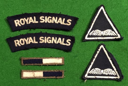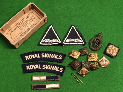 Acquired during the last pre lockdown visit to a house clearance contact, this is a small grouping of insignia to an officer in the Royal Signals belonging to an Air Formation Signals unit. Air Formation Signals were a normal army signals unit providing communications for the Tactical Air Force. They were responsible for all communications to airfields and TAF headquarters and played an increasingly important role during the campaign in Europe. Grouping consists of 2 AFS sleeve badges, 2 signal arm of services strips, 2 Signals shoulder titles, Signals OSD cap badge and various pips in gilt and cloth.