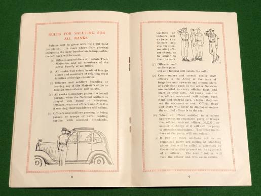 1947 ' Saluting in the Army ' a 16pg illustrated booklet produced by the War Office with the history, traditions and instructions for saluting - who knew ? Ex Lib. IWM some foxing to card covers, otherwise clean.