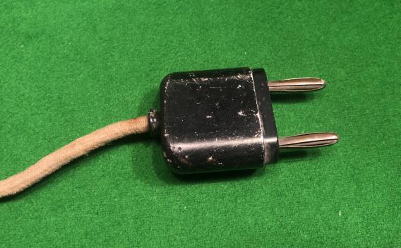 A WW2 German, handheld microphone with inscription ' Feind hört mit '. These handheld microphones were included with all German military radio sets with the inscription ' Feind hört mit ' a reminder that the ' enemy is listening '. Bakelite construction with a waffennampt mark moulded into the reverse. Good overall condition with one area of fraying to cable which could be cut out and some corrosion to cord reinforcement.