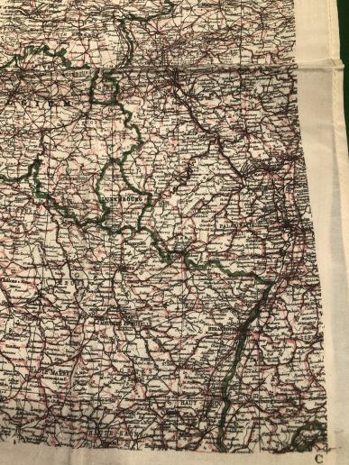Mid-War, single sided silk escape map for use primarily by the RAF. 52cms x 44cms size, multi-coloured this example is coded ' C ' and primarily shows France, Belgium, Luxembourg and Holland to 1:2,000,000 scale. Excellent, clean condition, has been folded.