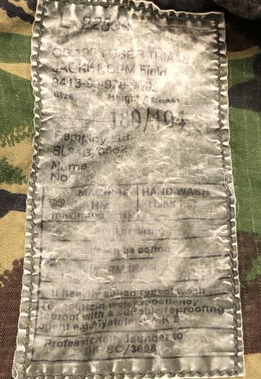This is a survivor of these trials labelled ' User Trials Jacket DPM, Field.' with it's red SCRDE label. Size 180/104 complete with separate hood, again marked with the user trials label. Both in good, undamaged condition with all buttons, zips etc.