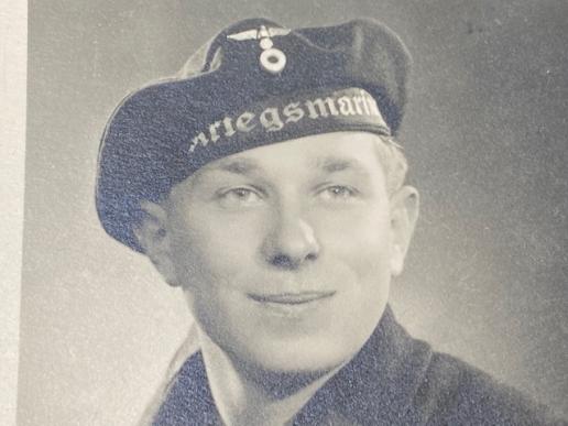 WW2 KRIEGSMARINE CAP TALLY MOUNTED WITH ORIGINAL PHOTO.