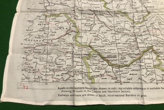 Double-sided, hemmed rayon escape map T2/T4 centring on Iran to the one side and those countries surrounding the Caspian Sea to the other. Scale 1:3,200,000. Excellent, clean condition.