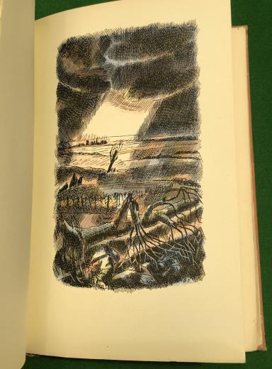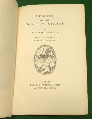 First Illustrated Edition 1931 of Sassoon's classic ' Memoirs of an Infantry Officer '. Illustrated boards with a coloured frontispiece and coloured lithographs by Barnett Freedman. 312pgs published by Faber & Faber in a run of 3500. Good overall condition with bumped spine and light marking and cracked frontispiece, clean contents.
