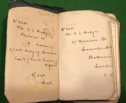 A grouping of diaries from 1915/16/17 and 1919 to 3251/531035 Pte.Albert.E.Hodges of 10 Platoon, C Company 2/15 City of London Regt. ( Civil Service Rifles ).