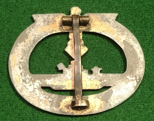 Original unmarked U-Boat War Badge by Foerster & Barth. Die-cast in zinc with the trademark feature of the Foertser & Barth badge, the distinctive flattened pin. Badge retains approx 65% + of it's original gilt finish with the usual wear to highpoints and reverse retaining approx 35% . Good, original later war badge.
