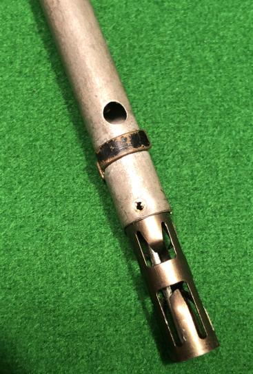 INERT Switch No.10, Time Pencil. Widely used by SOE and special forces this delay action fuze was used in conjunction with a detonator or Bickford cord to set off explosives. This example has a black safety strip indicating an approx. 10 minute delay. The pencil was initiated by crushing the copper tube that shrouds a glass ampuole containing corrosive liquid. In good overall condition.