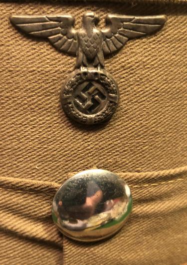Post 1931 SA Kepi. Manufactured in light brown twill to be worn with the brown shirt, with the first pattern national emblem above a single polished silvered button and leather chin strap. Clean interior with faux leather headband but no manufacturer's details. These caps do not have an RZM tag, their manufacture predates the formation of the RZM organisation. Excellent, clean condition possibly unissued or little used example.