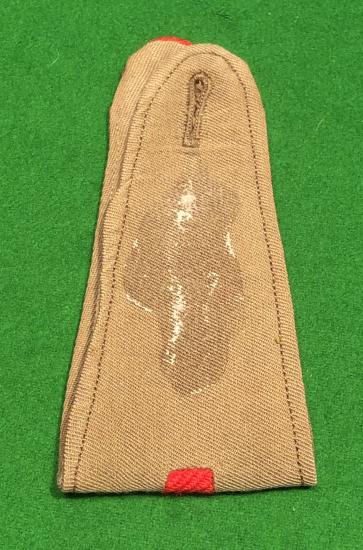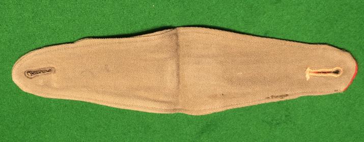Shoulder strap worn by an o/r or ' member of the Women's Army Auxiliary Corps. The shoulder strap had a coloured central bar denoting their branch of service, in this case red for domestic . WAAC shoulder title attached to strap as per regulation. In excellent condition with some glue residue to reverse.