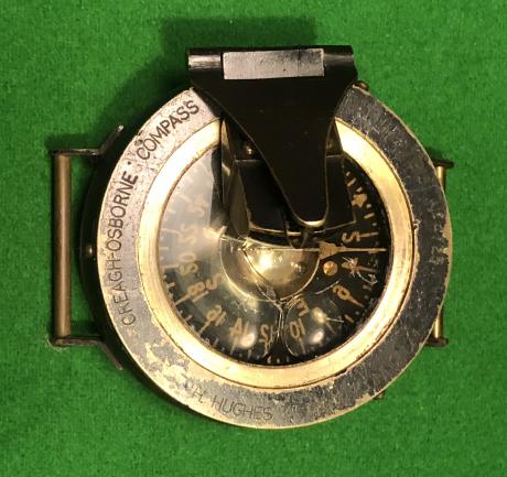 A WW1 Creagh-Osborne Compass,patent '1148/1915 manufactured by H Hughes & Son Ltd London. A prismatic and liquid dampened wrist mounted marching compass, this well engineered type found favour amongst flyers and very similar to Observer's wrist compass Pattern 261 BLACKER-Type used by balloonists.