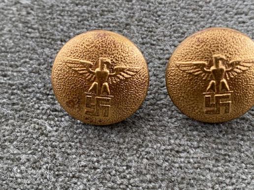 A small collection of tunic buttons for a political Leaders tunic. There are a matched pair, two very similar and one single. All marked with makers and RZM on the reverse. Interesting display items, or ideal if you have a tunic with missing buttons!!