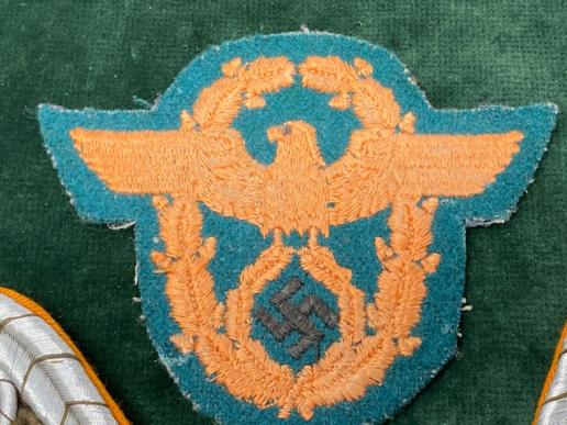 PAIR OF EPPAULETS AND ARM BADGE FOR THIRD REICH POLICE.