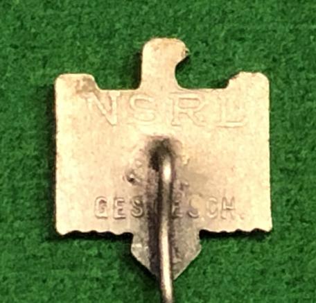 A NSRL (Nationalsozialistischer Reichsbund für Leibesübungen )National Social League of the Reich for Physical Exercise) proficiency stick pin; in gilded zinc; 50 mm long knurled pin; marked ' NSRL ' and ' Ges. Gesch.' to the reverse with the raised manufacturer's mark of Hermann Aurich. 18 mm x 15 mm; in good condition with the majority of the original gilding intact.