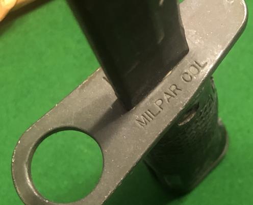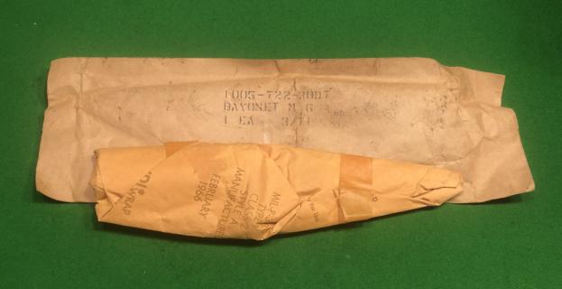 ' MIL PAL COL ' and ' US M6 '. Contained in it's original packaging indicating manufacture in 1966 and subsequent rewrapping in 1969 indicating it's probable relegation to reserve stock as the M16 rifle began to be issued in the same year. Excellent, unissued condition,