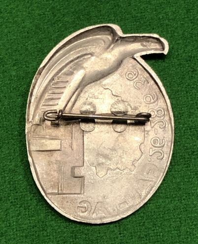 Large ( 38mm x 51mm ) and bold, die-struck badge for the Trier/Koblenz Gau-Tag 26-28.6.36. Pin fixing to reverse with no manufacturer's marks. Striking, graphic design and in good condition.