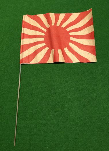Original paper and cane Japanese rising sun flags, the type typically given or sold at patriotic parades or events. These scarce, original survivors are In excellent condition.