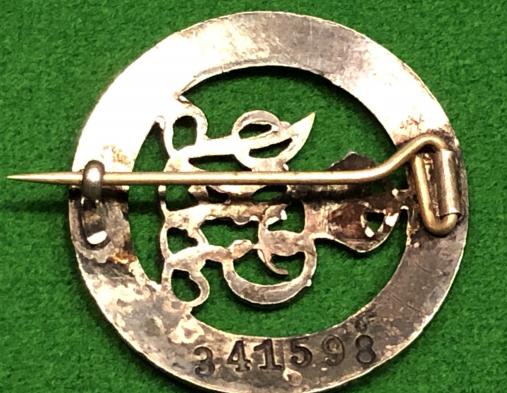 Silver War Badge, number 341598 awarded to Lt.& Qmr.G.F.H.Palfrey an officer on the General List. He is listed a residing at the Cottage hospital, Southport. Accompanied by SWB record but would reward further research.