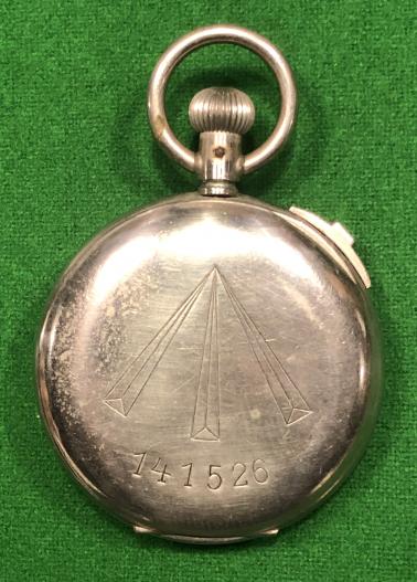 Nickel cased stopwatch with a jewelled Swiss movement as issued to WW1 British Artillery units. Side mounted stop/start mechanism with serial and broad arrow marked case. Good, clean condition and in GWO.