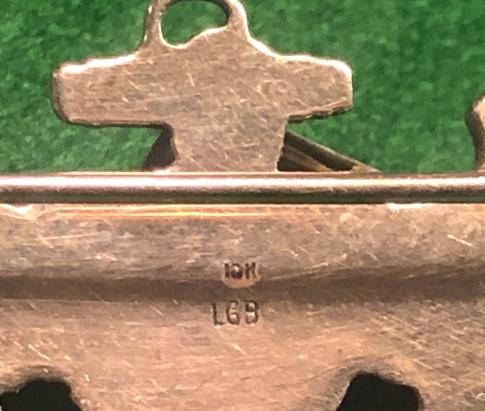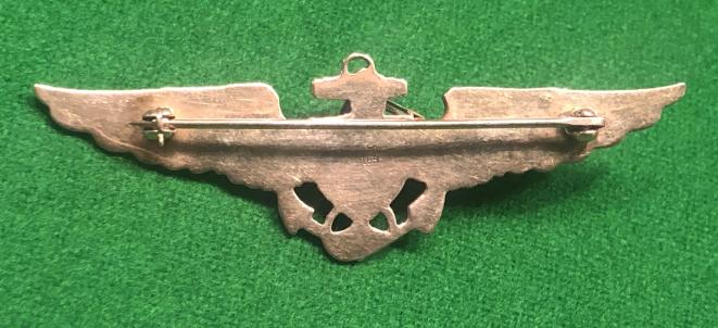 CWW2 14 carat, US Naval Aviator's wing. Solid construction with pin fastening with ball catch. Marked ' 14K. LGB ' indicating it's gold construction and manufacture by L.G. Balfour Company of Attleboro, Massachusetts. High quality wing with deep detail, superb example.