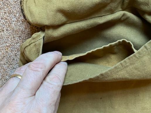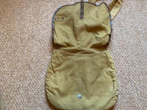 A good example of a 'political' type of bead bag used by the SA or Hj, and other non-military organisations. With a canvas shoulder strap, rather than a belt attachment. In tan canvas with leather edge to the flap. All buttons and loops present. Separate internal pocket. Two exterior leather loops on the flap for water bottle. In very good condition, with no damage.