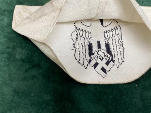 A very distinctive armband and great for display with badges, daggers etc. This is the armband worn by army recruitment officers. White linen background with a great closed with Wehrmacht eagle and swastika in black, woven directly into the fabric. A little grubby but a proper, original armband.