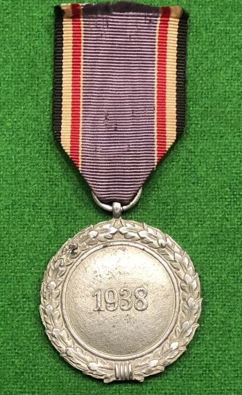 Original German WWII Luftschutz Medal, 2nd Class. Zinc construction with a ringmark of ' 10 ' indicating manufacture by Forster & Barth, Pforzheim. In good used condition with slightly grubby original ribbon.