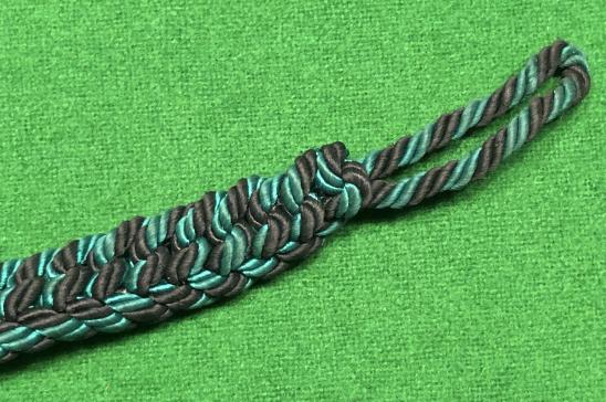 Early pattern 1936 HJ Leader lanyard in green and black for HJ-Hauptscharfuhrer. Later patterns had a metal clip to one end. Good, used condition.