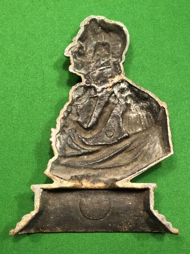 Cast, free-standing plaque of Wellington. Featuring a bust of Wellington mounted on a plinth in an aged bronze effect. Typical of the popular 19th Century commemorative ware that proliferated in the Victorian age. Undecipherable maker's mark to the reverse. Attractive item.