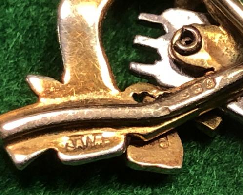 Superb 9ct gold and enamel sweetheart brooch for the 3rd Carabiniers. Multi-piece construction with pin fastening secured by a roller catch. Birmingham Hall marked with manufacturer's marking ' J.W.B.' indicating manufacture by one of the premium London makers J.W.Benson. Excellent, quality item that would benefit from a clean.
