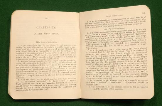 Field Service Regulations Pt.I Operations Manual 1909 Rp with Amendments 1914. 302pg manual outlining all aspects of operations from ' warfare against an uncivilised enemy ' - with some very un pc advice to ' the battle '. Deals in outline with subjects as diverse as grenades to latrines ! In good, used condition with some marking and nibbles to first two feps.