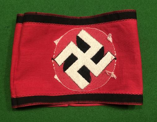 BeVo weave SS armband for use on the brown shirt. Multi-piece construction with the central part being the same as the standard Party armband with the black bands being applied separately. Excellent, used condition.