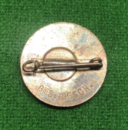 Silver gilt and enamel lapel badge for wear by members of the DJ or Deutsche Jungvolk. Pin fitting and marked ' Ges.Gesch. ' to the reverse. Souvenir brought back by a Control Commission officer. Excellent condition patinated overall.