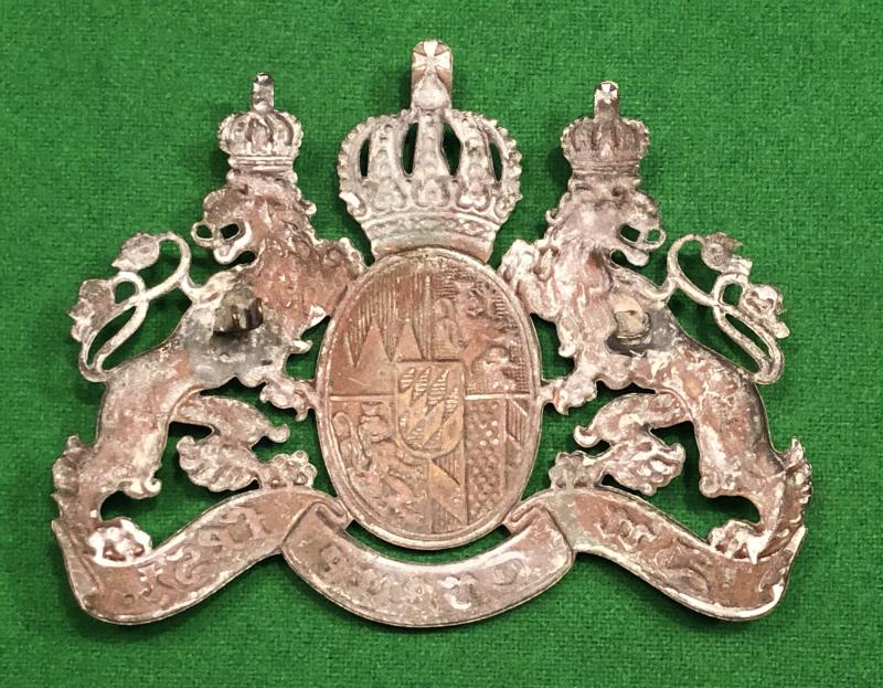 Die stamped brass Pickelhaube plate worn by Bavarian other ranks. Heavily patinated with one fixing pin missing from the reverse.