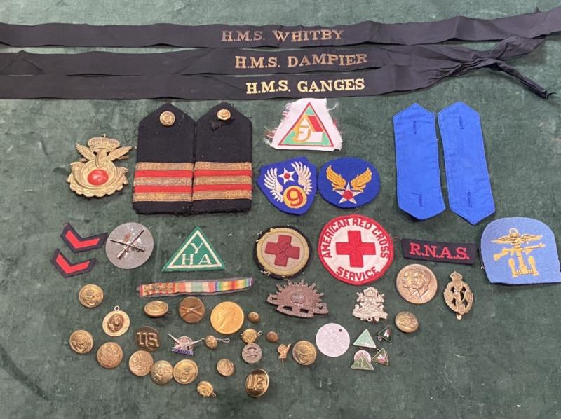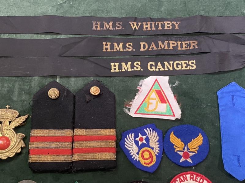 Some highlights though. 3 original Royal navy cap tallies, various WW2 cap badges, including one for the Australian Forces slouch hat, numerous buttons, set of epaulettes (navy?) US airforce sleeve badges, etc etc. Fun to discover what’s really there, as I have not really bothered to check.