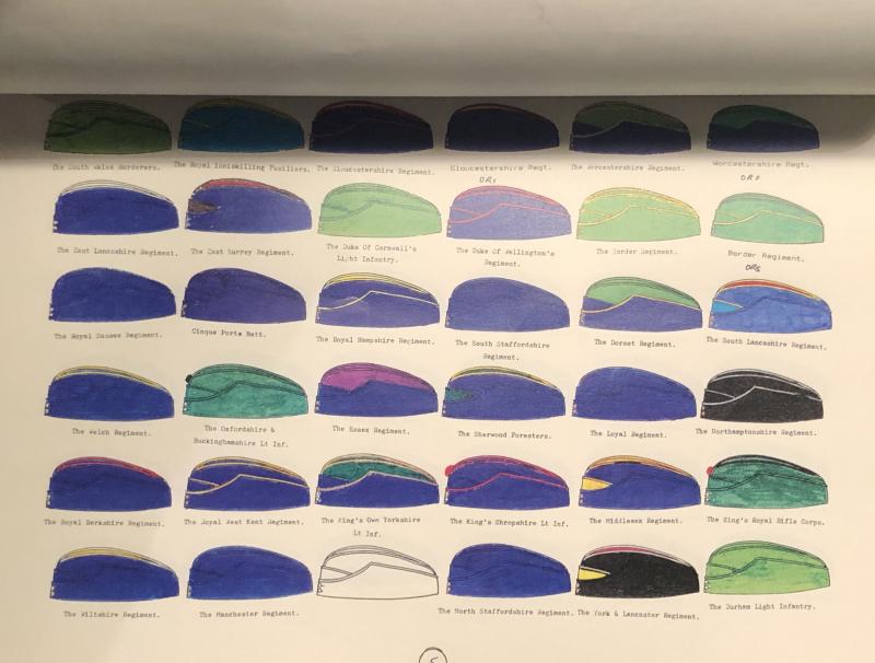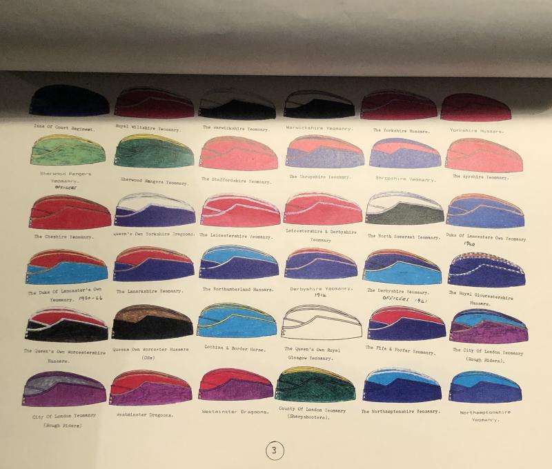Self Pub.1994 British Military Hats by Margaret E.Nobbs. 16pg, hand coloured guide to the variations and colours of the field service caps, glengarries and caps worn by the regiments of the British Army.