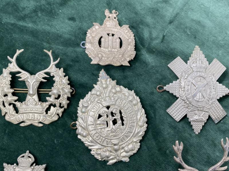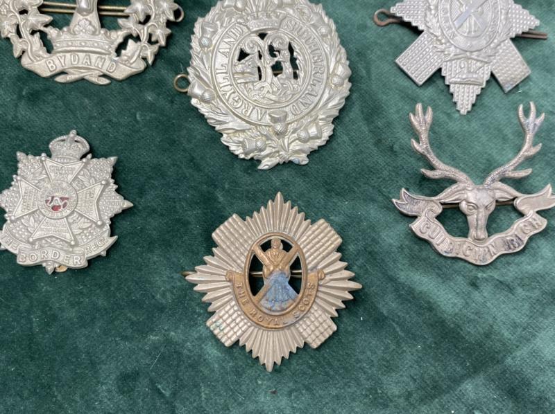 A very nice little selection of 7 cap badges for the following regiments. The Border Regt., The Royal Scots, Argyll and Sutherland Highlanders, Kings Own