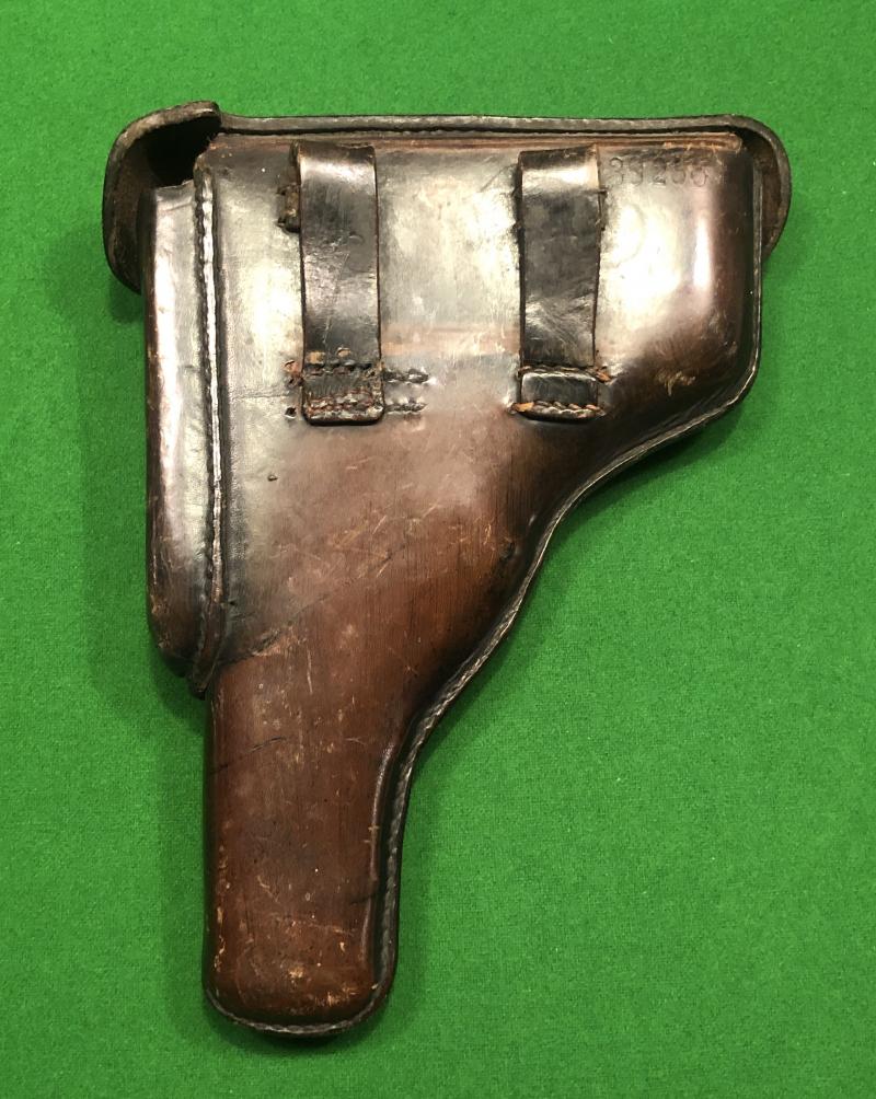 A very nice original leather, hardshell P38 holster. Marked with the initials LPN West German Police, ' Landespolizei Niedersachsen,' (Lower Saxony). Serial number stamped to the reverse and repeated in ink to interior and a partial typed label with manufacturer's stamp ' Geco ' alongside. Good used condition.