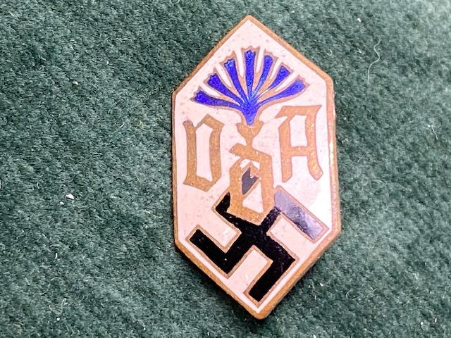The Verein für Deutsche Kulturbeziehungen im Ausland."Association for German cultural relations abroad"), abbreviated VDA, is a German cultural organisation. During the Nazi era it was engaged in spying across the whole world, using German minorities living in other countries. Its other goals included preservation of German culture among "racial Germans" This is a membership pin back enamel badge. With the DVA symbol on the front and a very prominent swastika. In near mint condition. This was one of the more unusual and rarer organisations in Hitlers Germany.