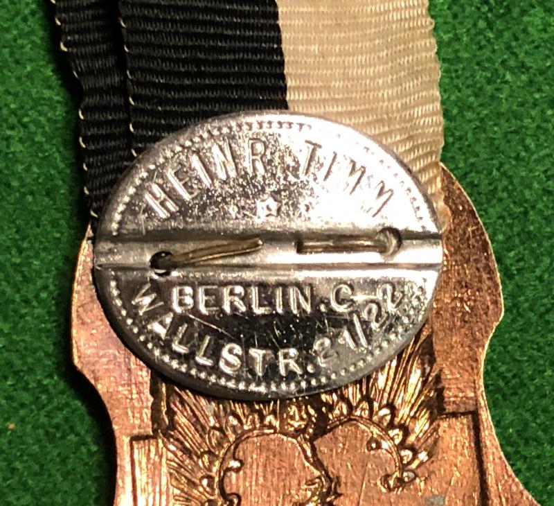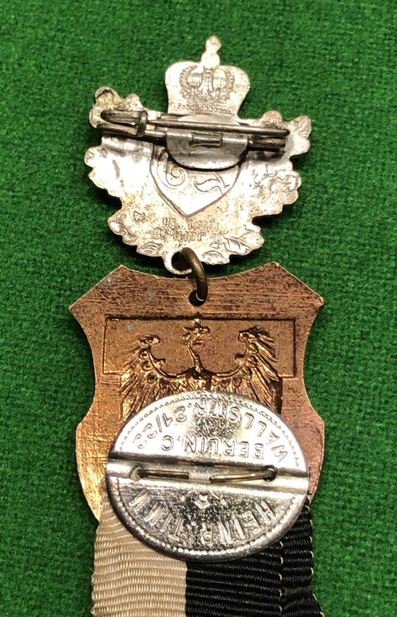 Original Preußischer Landeskriegerverband membership badge with additional 25 year shield. Manufacturer shield for Heinrich Timm, Berlin attached to the reverse, same manufacturer for the 25 year shield. Good, used condition.