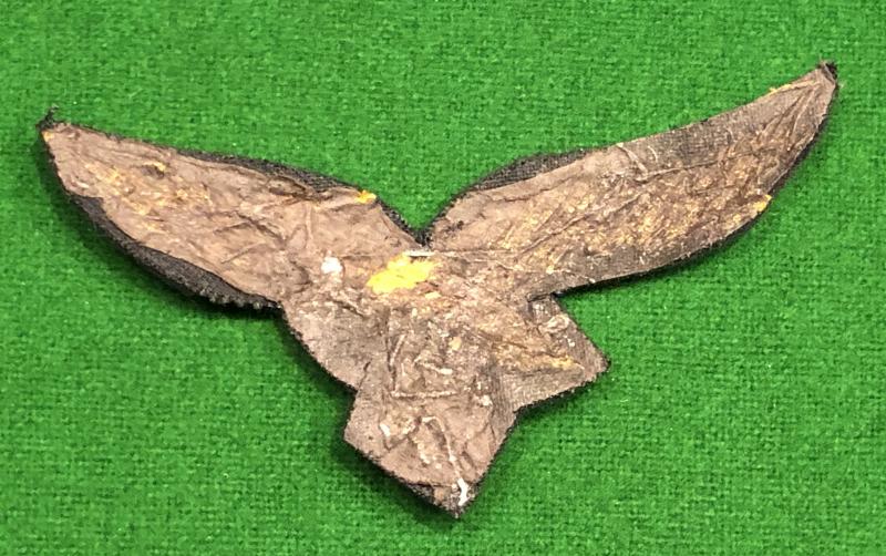 WW2 Luftwaffe Officer's bullion breast eagle. Bullion embroidery on fine wool with paper backing. Bullion is powdery, with some areas now missing showing cording construction, wings picked out with cotton highlighting. Priced accordingly.