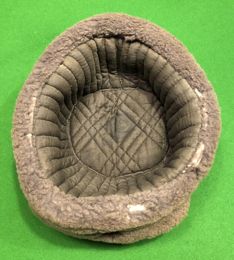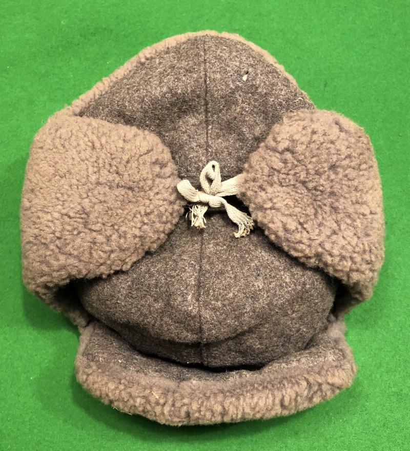 Russian M1940 Shapka-Ushanka. This pattern was adopted in April 1940 to replace the Budionovka. This example in good, used condition with typical soiling, nap wear to the fleeced cotton crown , and some minor fur loss to some edges. Has what appear to be the original cotton tie strings and gilt and enamel cap star. The grey cotton interior shows minor soiling and evidence of wear. In the interior crown can be found the manufacturer's mark, this is of the more generic wartime type where the block stamp only has the ' 4 ' discernible.