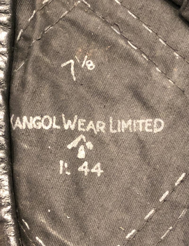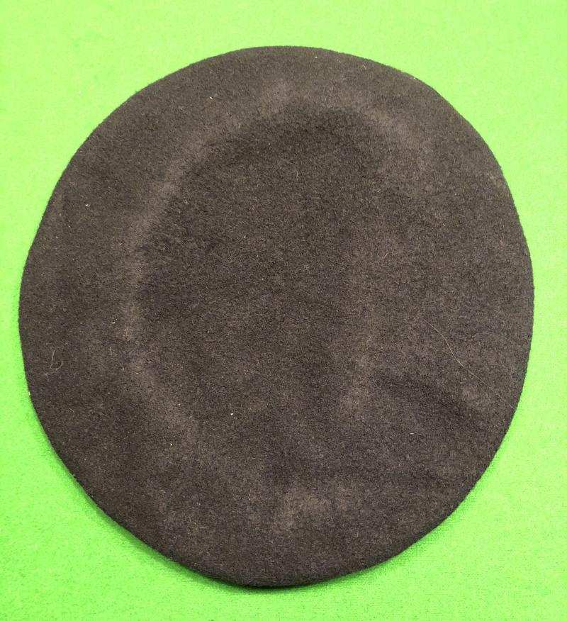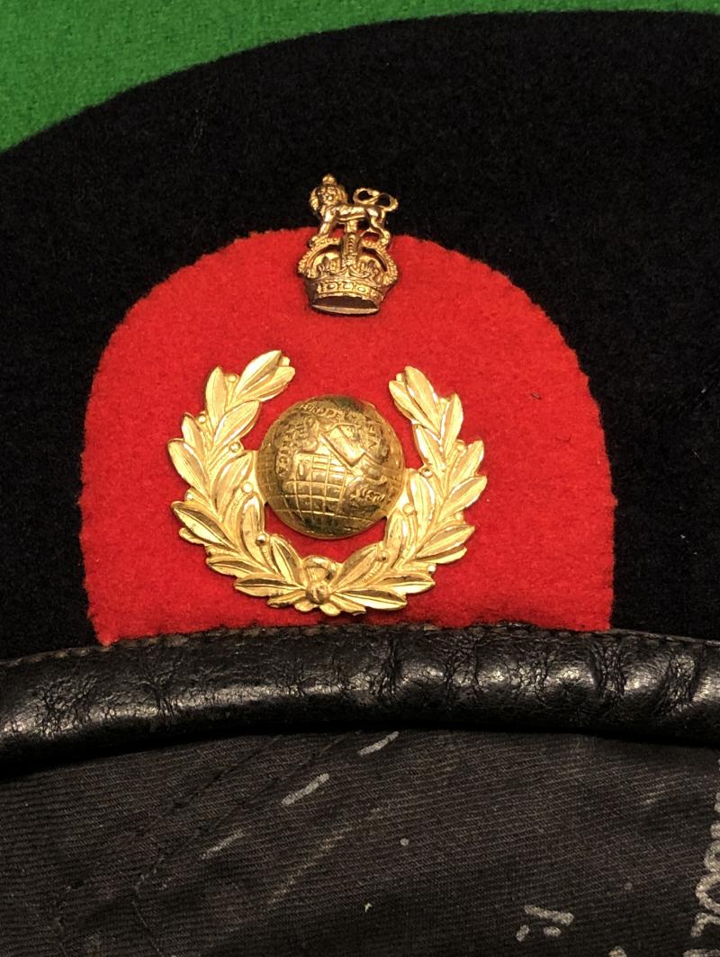 A good, probably unissued Royal Marines beret. Size 7 1/8, 1944 dated by Kangol Wear Ltd dark blue wooden beret. Red badge backing attached with gilded RM officer's cap badge affixed. Generally excellent condition with some moth grazing in what otherwise would be a mint example.