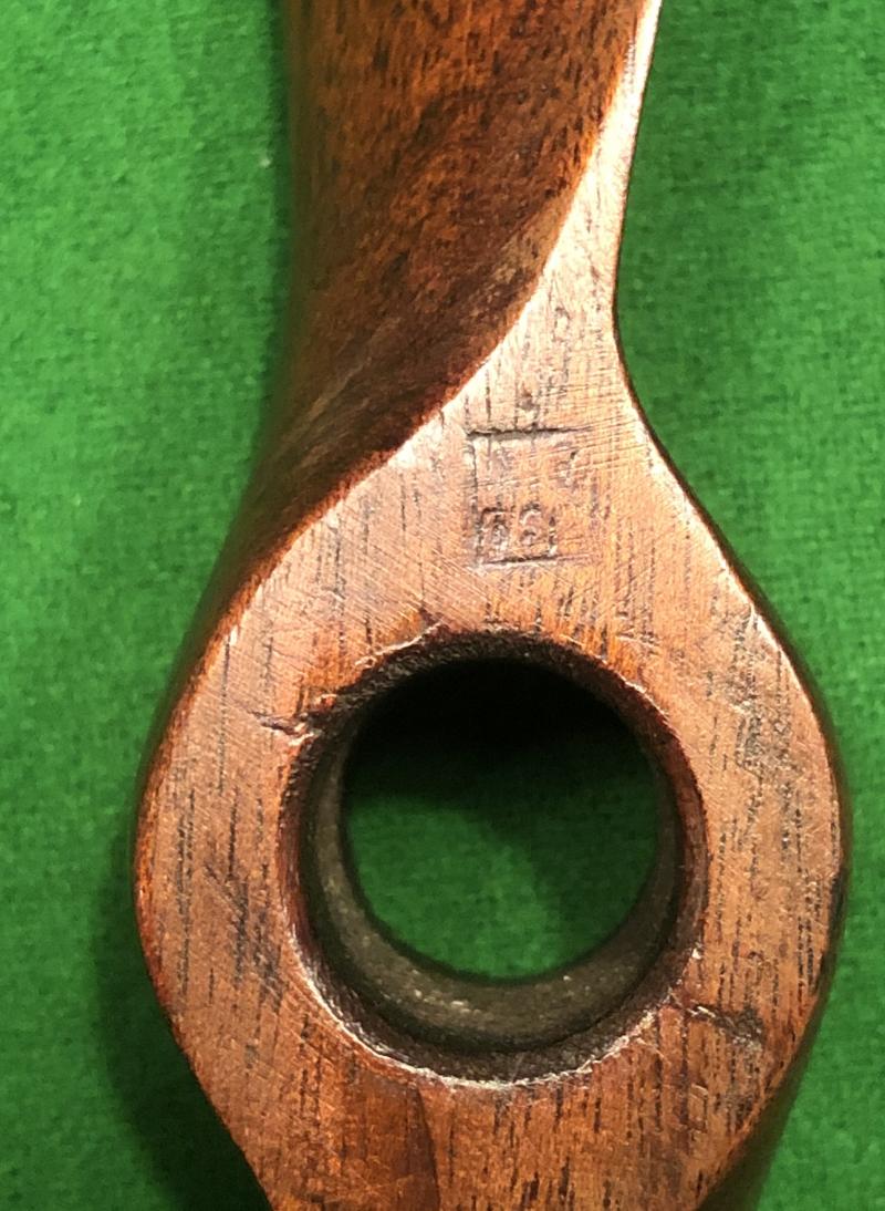 Aircraft generator propeller, approx. 305mm from tip to tip with a deep chord. Carved in a single piece with AID stamp to centre. In good overall condition with one knick which does not alter the profile of the blade.