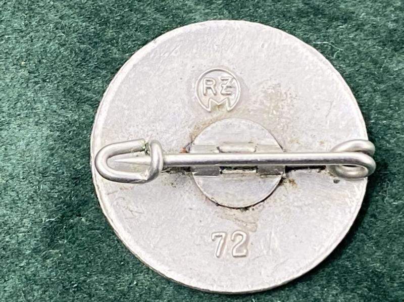 An enamel badge for the DJ organisation. Near perfect condition with no damage to the enamels. Pin-back to the reverse and RZM marked also with the number 72. Membership badge for the DJ (youngest members of the Hitler Youth) Enameled front with the single DJ rune. This is the second pattern badge and was worn before and in conjunction with the HJ diamond when it was introduced in 1933. In very good, uncleaned condition.