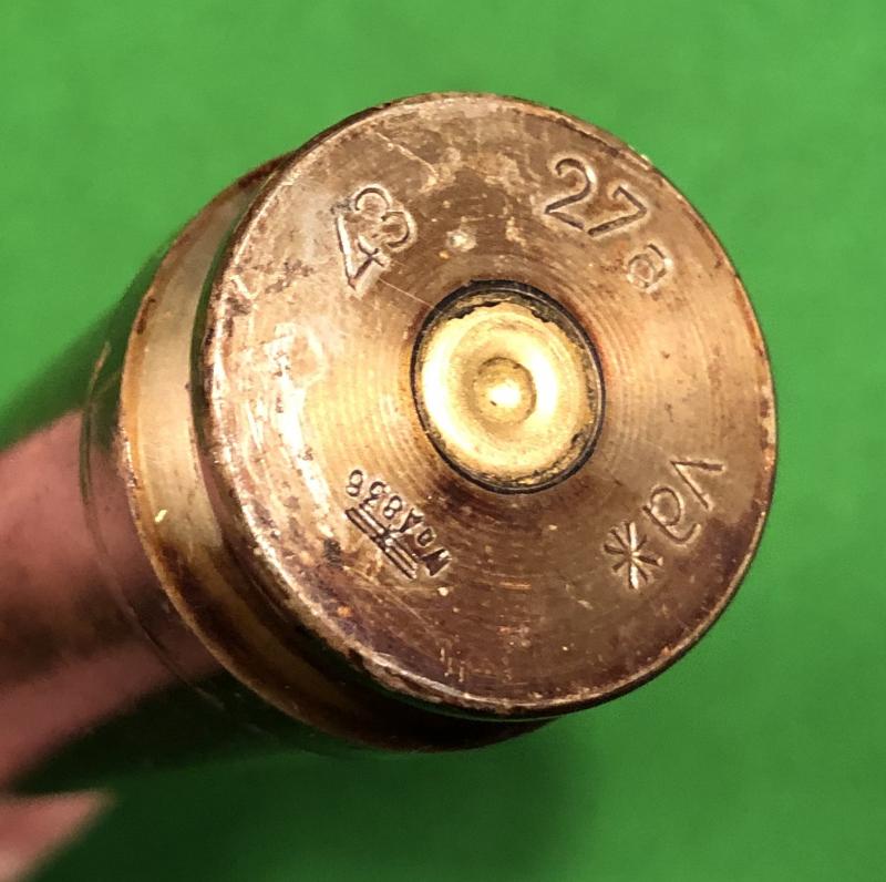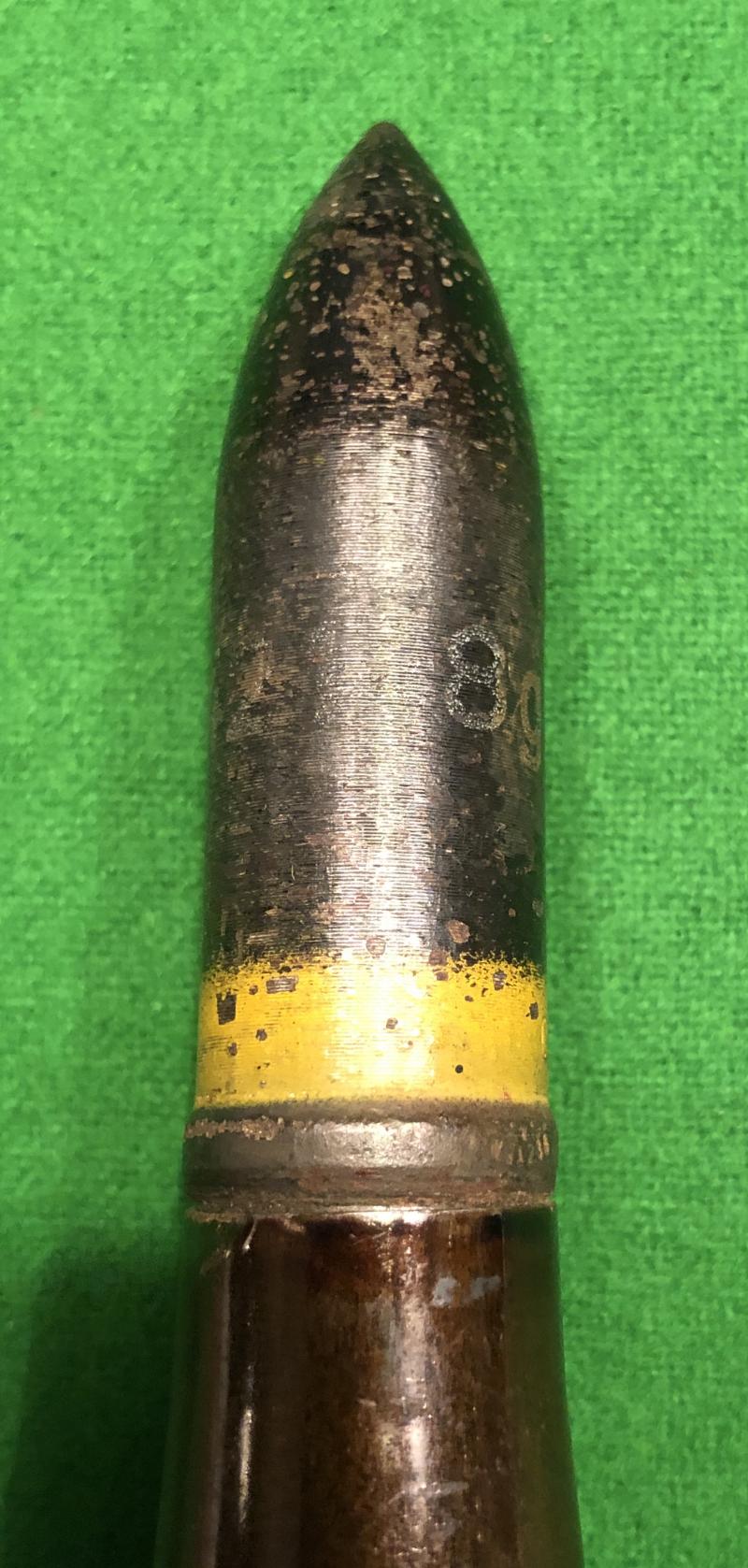 1942 dated 20mm Armour Piercing projectile and case . Projectile with 70% + of it's original colour and stencilling with a yellow band signifying a yellow trace element. 1943 dated lacquered steel case with manufacturer's letter codes and Waffenampt . Excellent, original condition with some areas of very minor corrosion and marking.